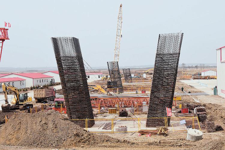 5月3日,黑龙江大桥桥梁主体钻孔桩基础累计浇筑完成83根,承台累计浇筑完成5座,0号台身已浇筑完成,3号墩柱钢筋加工及安装已完成,正在进行1号、2号墩柱的钢筋加工及安装,累计完成混凝土量7328.66立方米。黑龙江大桥引道工程也在陆续展开。